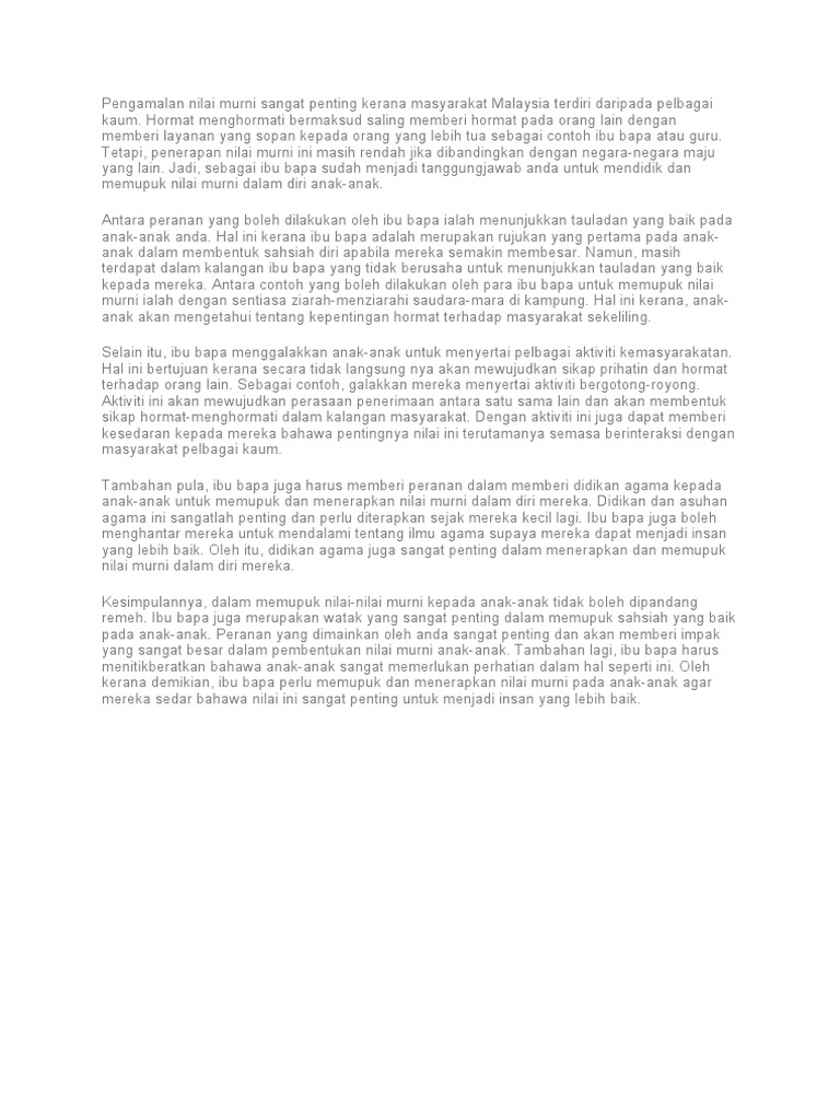 Contoh Karangan Penerapan Nilai Murni Pdf